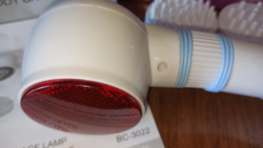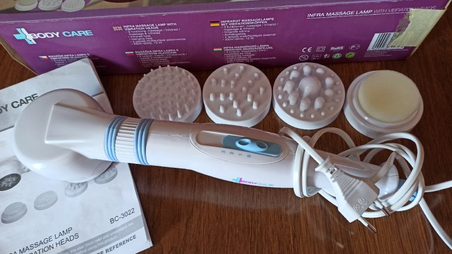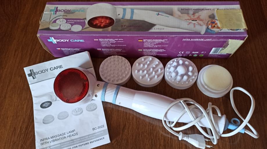 body care lampa sa uputama (engl.njem.mađ.slo.), jednostavno korištenje, sve ispravno, nije korišteno osim za probu, dobiveno na poklon. Idealno kod bolova na tijelu, natočito masaža vrata. Također ima i glavu za masažu lica. Infra crvena lampa protiv upala grla i zglobova.