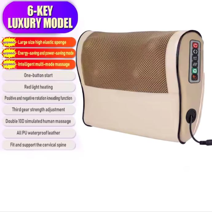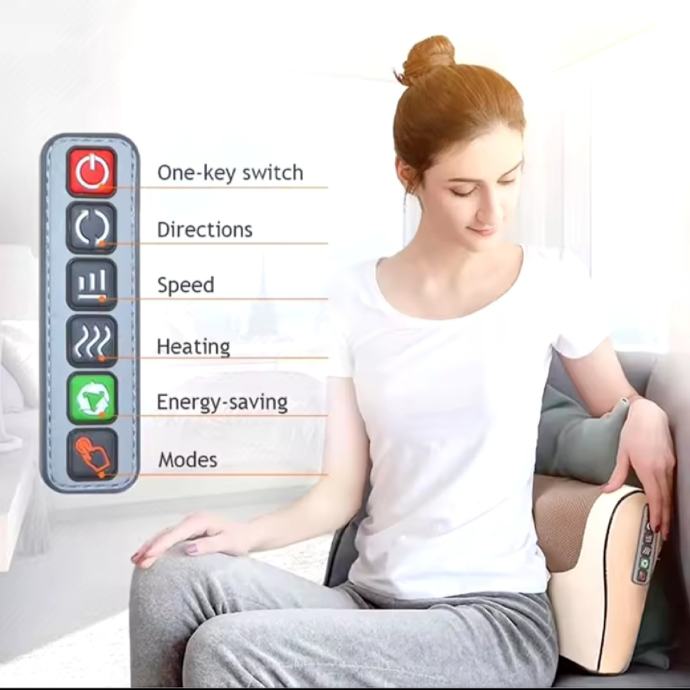 Masažni jastuk za opuštanje mišića, relaksaciju napetosti i stresa, rad po principu shiatsu masaže. Za vrat, leđa, noge, stomak itd. Šest programa rada, sa grijanjem ili bez. Boja bež.