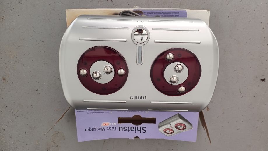 Prodajem Homedics Shiatsu masažer za stopala. Uređaj ima dva rotirajuća dijela s masažnim glavama koje pružaju shiatsu masažu. Pogodan za opuštanje i poboljšanje cirkulacije stopala nakon dugog dana. Jednostavan za korištenje, s regulacijom intenziteta.
