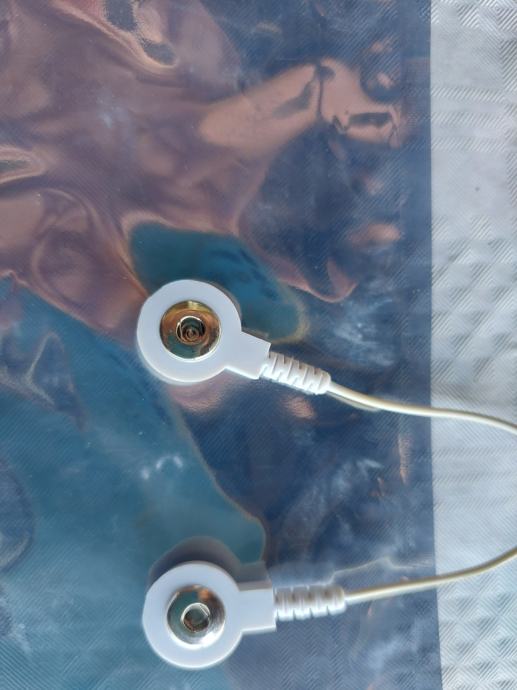 Visokokvalitetne, Long Life, povećane vodljivosti, elektrode za sve vrste TENS uređaja i elektrostimulatora. Elektrode su spojene u paru radi jednostavnije aplikacije na željeno mjesto. Mogu se i razdvojiti. Veličina: 20 cm x 6 cm. Priključak za kablove (druker) promjera 3,5 mm (na slici prmjer kabla koji odgovara, kabel ne prodajem). U pakiranju su dva para za dva kanala (četri elektrode). Cijena je za jedno pakiranje. Imam više komada.