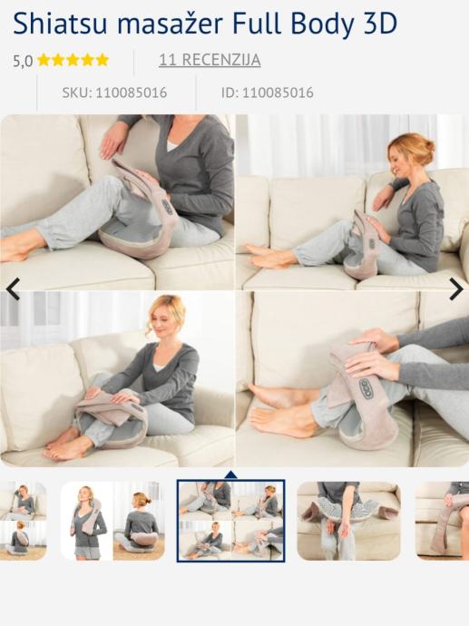 Welneo shiatzu masazer za cijelo tijelo. Odličan,kratko korišten jer imamo još jedan. Ispravan,jedino nemam kutiju. Punjač ide uz njega. Na jednoj slici se vidi mala mikro rupica, oštećenje,ako se to tako može reći. Iako je gotovo neprimjetno i ne ometa funkciji masazera.