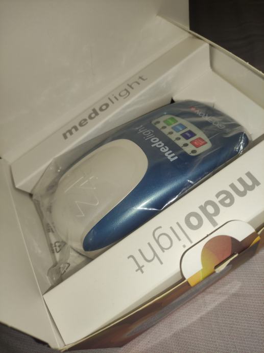 Medicinski uređaj za svijetlosnu terapiju. Uređaj je koristen manje od pola sata, u savršenom stanju dolazi uz; upute za koristenje, punjac, vrpca za nosit oko vrata, knjigica sa informacijama u vezi proizvoda.