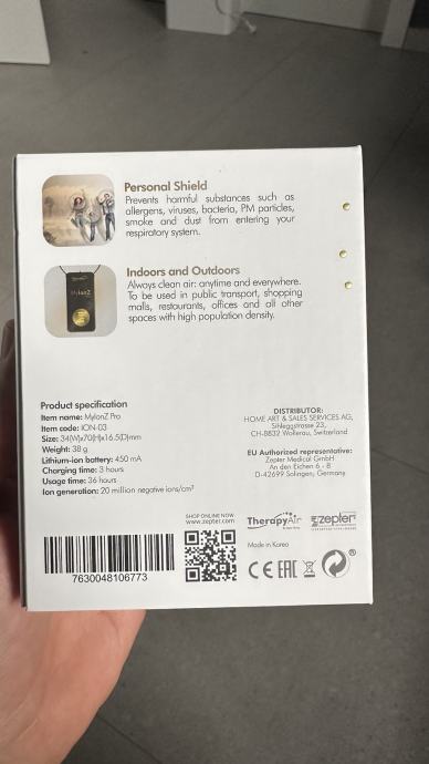 MyIonZ Pro je novi model u MyIon liniji inovativnih, osobnih pročišćivača zraka koje možete nositi sa sobom bilo kada i bilo gdje. Uređaj generira impresivnih 20 milijuna negativnih iona po cm3 i sprječava ulazak štetnih tvari kao što su virusi, alergeni, čestice PM-a, dim i prašina