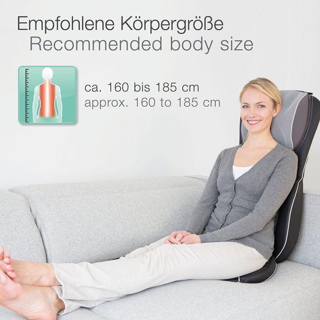 Beurer MG 295 Shiatsu masažna sjedalica pruža mogućnost biranja vrste i intenzitet masaže. Korisnik može birati između masaže duž kralježnice, shiatsu masaže vrata, masaže lupkanjem, rotrirajuće masaže i masaže određene točke na leđima. Postoje dvije brzine masaže koje određujemo putem jednostavnog daljinskog upravljača. Idealna naprava za opuštanje.