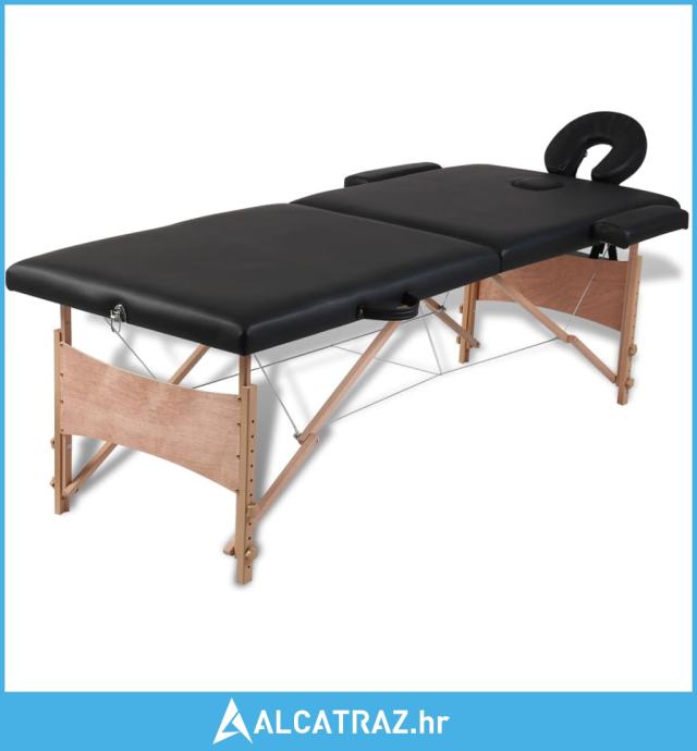 Ovaj sklopivi stol za masažu iz dva dijela ima drveni okvir i pogodan je za profesionalce ali i za amatere.