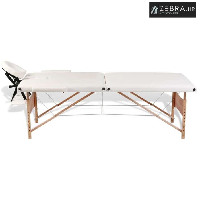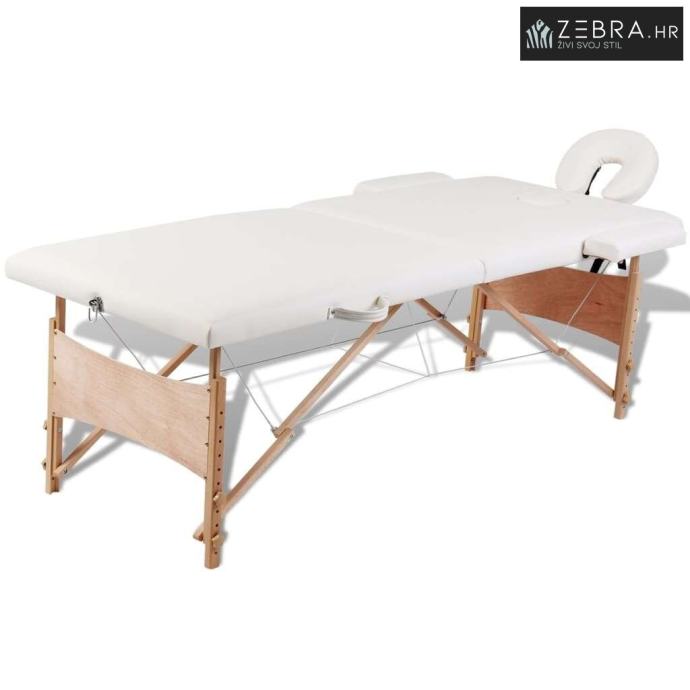 Krem bijeli sklopivi stol za masažu s 2 zone i drvenim okvirom - Krem