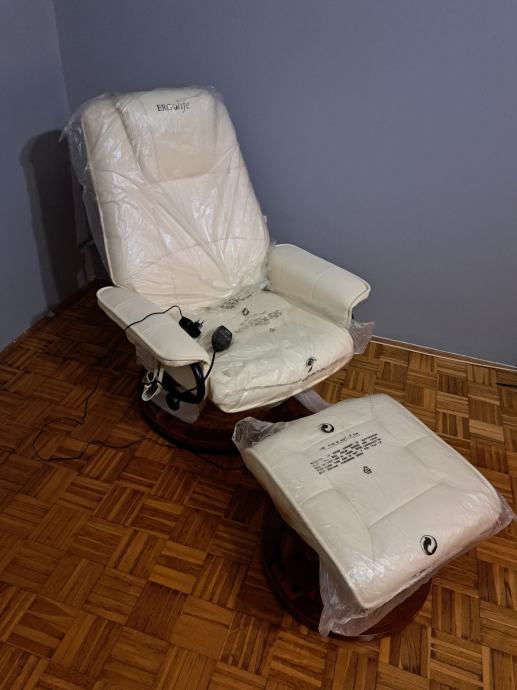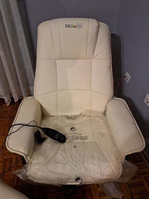 Prodaje se masažna fotelja Ergolife sa osloncem za noge. Fotelja je nova i nekorištena. Sastoji se od dva dijela, fotelja za masiranje te pripadajući oslonac za noge. Funkcije masiranja su višestruke i opuštajuće za cijelo tijelo.