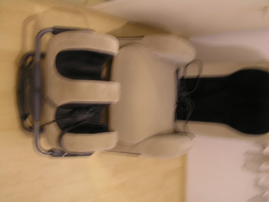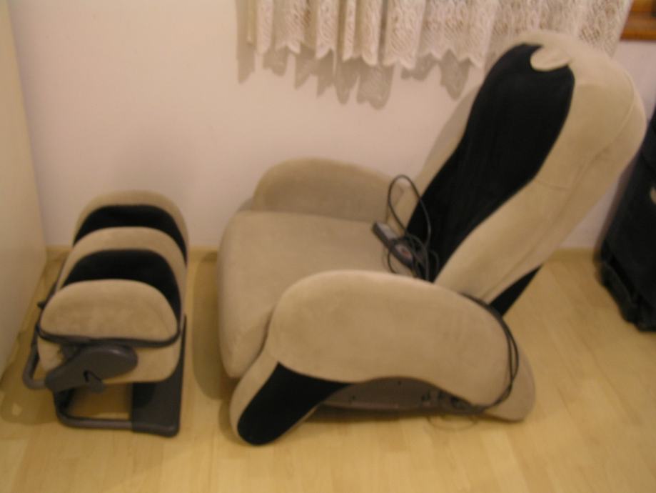 Nova masažna fotelja na principu ručne masaže, konstruirana od strane kiropraktičara, posjeduje certifikat međunarodne zdravstvene organizacije, potpuno nova, sva pripadajuća dokumentacija, u dvije boje bež-crna, dva daljinska upravljača za programe rada. Zauzima malo mjesta jer postoji mogućnost odvajanja masažnog dijela za noge koji posjeduje zaseban pogon.