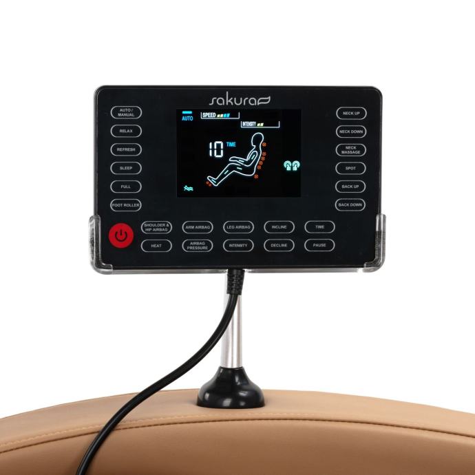 Sakura masažne fotelje karakteriziraju majstorska preciznost izrade, najnaprednija tehnologija i potpuna udobnost za korisnika. Izvrstan je izbor za one koji žele najkvalitetniju masažu, lako dostupnu u svojim domovima, uredima ili radnim mjestima. Konstrukcija fotelje je čvrsta, a presvlake su izrađene od visokokvalitetne ekološke kože.