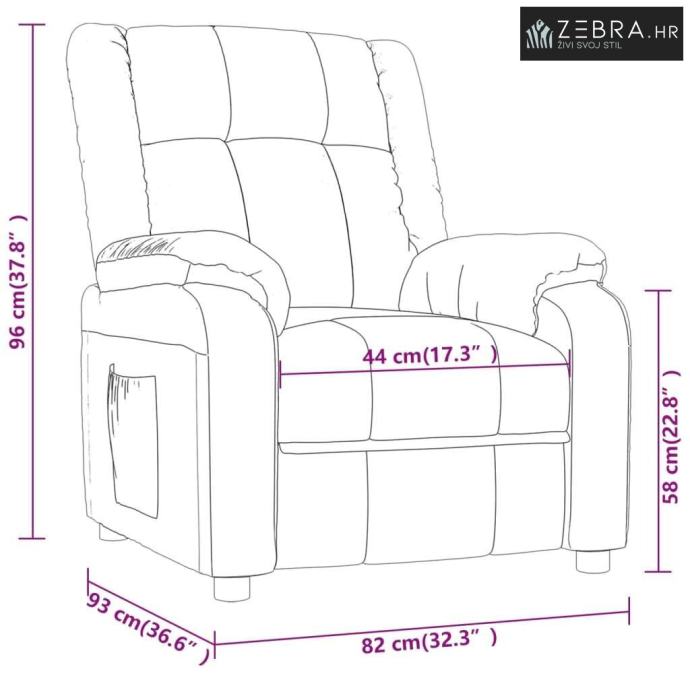 Dimenzije u sjedećem položaju: 82 x 93 x 96 cm (Š x D x V)