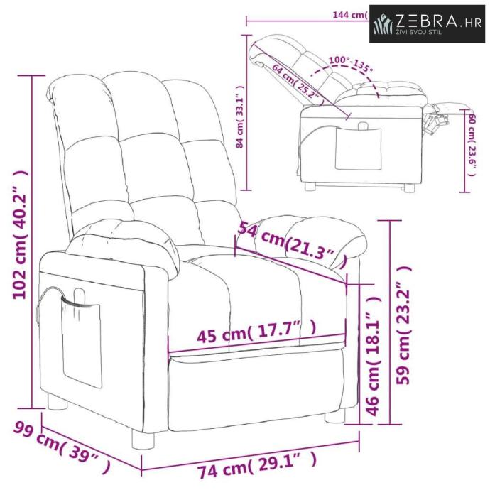 Dimenzije kod sjedenja: 74 x 99 x 102 cm (Š x D x V)