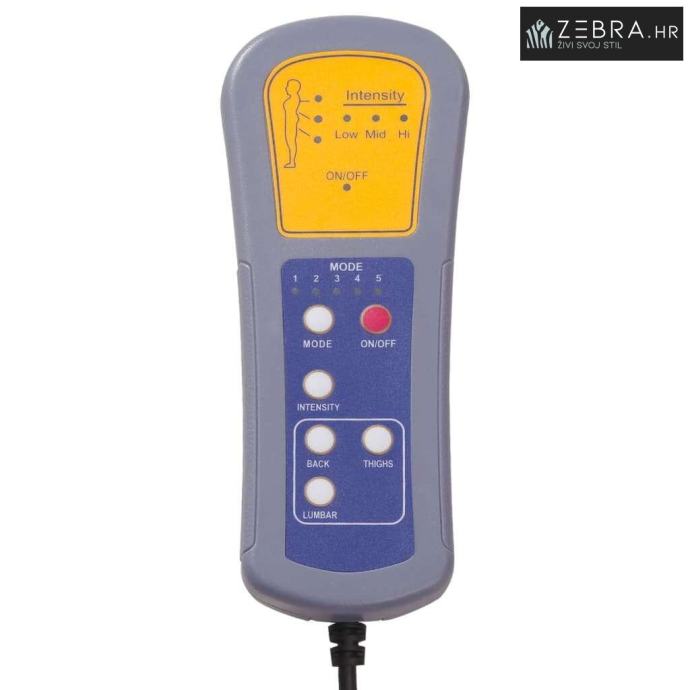 Funkcija vibracije: Uključenih 6 masažnih točaka omogućuje vam da iskusite bolje ciljanu masažu. Uz to, priloženi ručni upravljač dodatno vam omogućuje odabir različitih programa masaže. Funkcija masaže napaja se preko USB priključka, ali certificirani USB izvor napajanja od 5 V nije uključen.