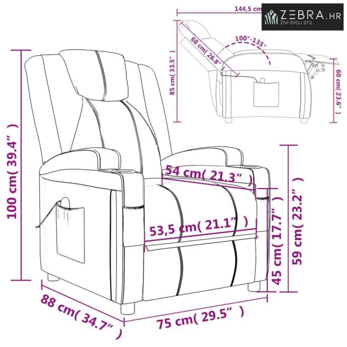 Dimenzije kod ležanja: 75 x 144,5 x 85 cm (Š x D x V)