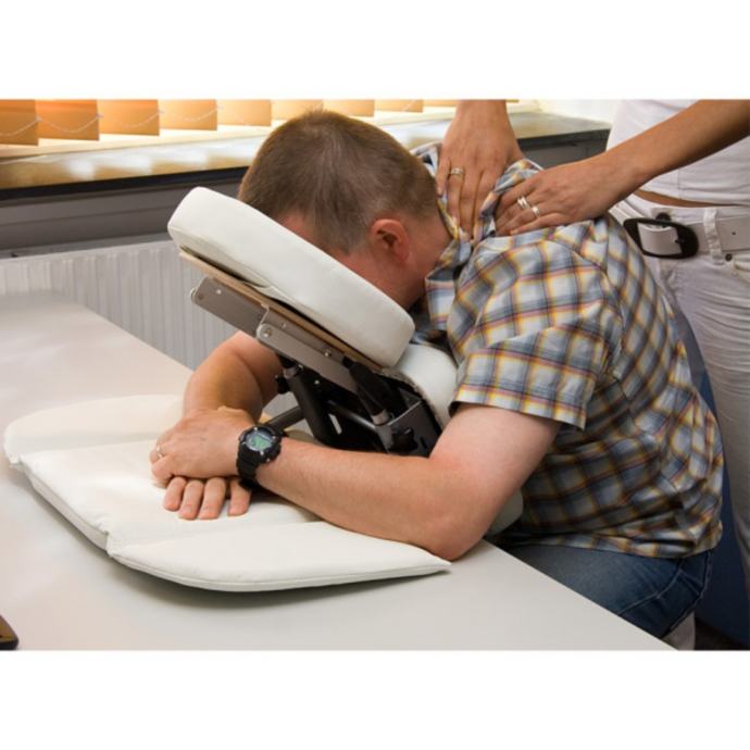 Fleksibilan nastavak za stol za masažu tvrtke MOVIT koji se lako podesiva po visini i kutu. Kompaktan dizajn masažnog naslona za glavu i čvrsta transportna torba omogućuju praktičan transport. To ga čini fleksibilnim u upotrebi.