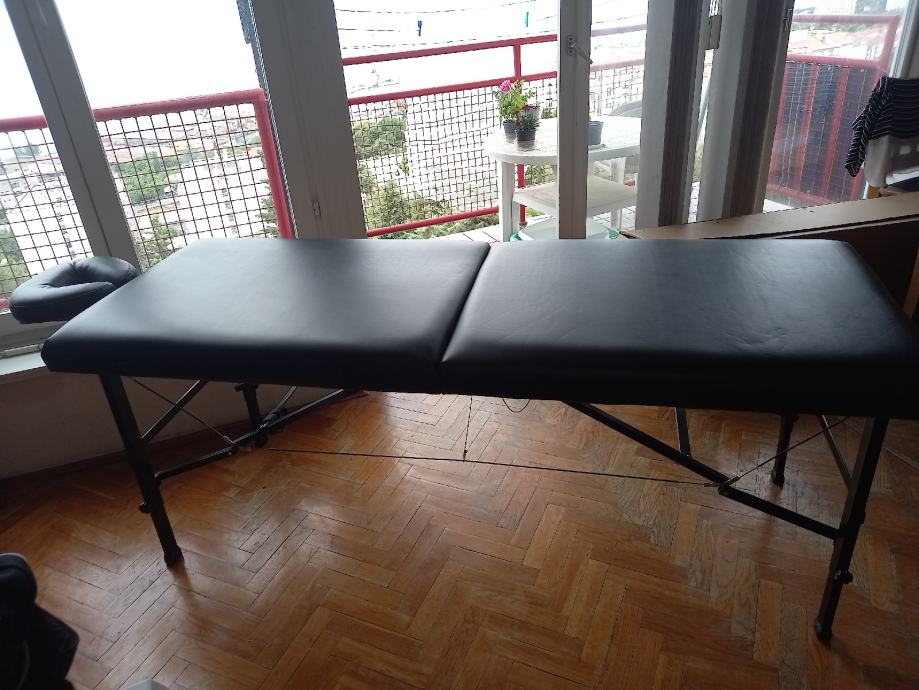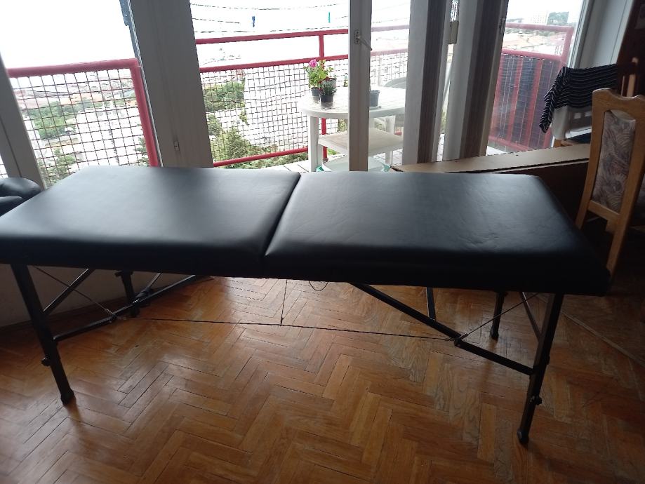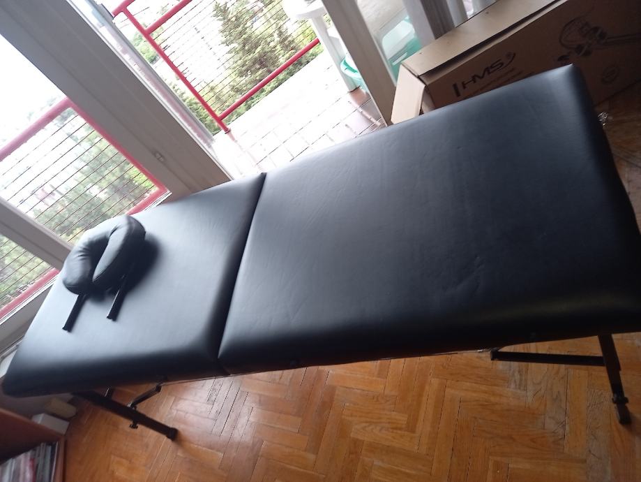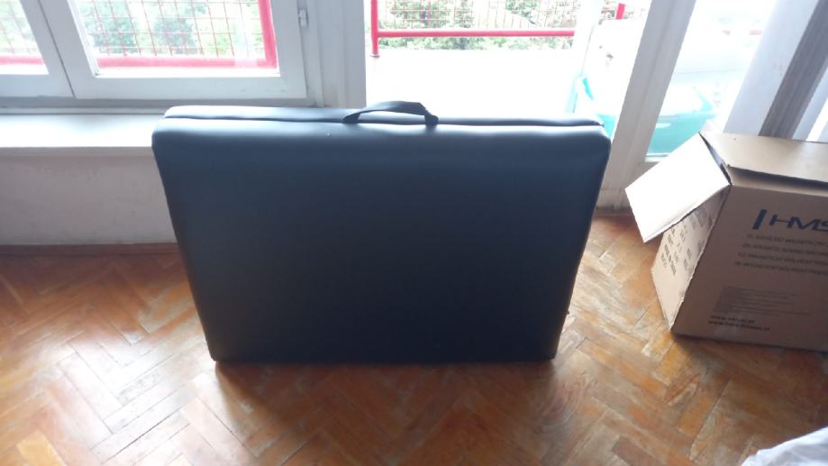 PRIJENOSNI STOL ZA MASIRANJE MARKE InSTEP LLC, MODEL MT100, DIMENZIJA 71cm×185cm, VISINA PROMJENJIVA OD 70CM DO 86cm, MOŽE DRŽATI DO 250kg, LAGAN ALUMINIJSKE KONSTRUKCIJE, BRZO SE SLAŽE U MALEN LAKO PRENOSIVI KUFER, POSJEDUJE DIO ZA ODMARANJE GLAVE. STARI MODEL KORIŠTEN 2 PUTA.