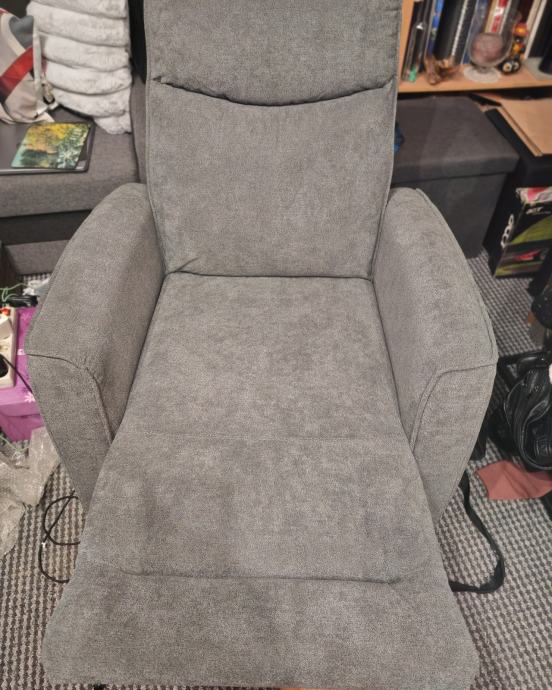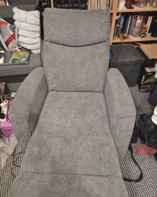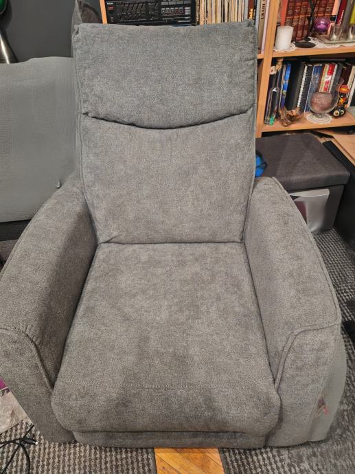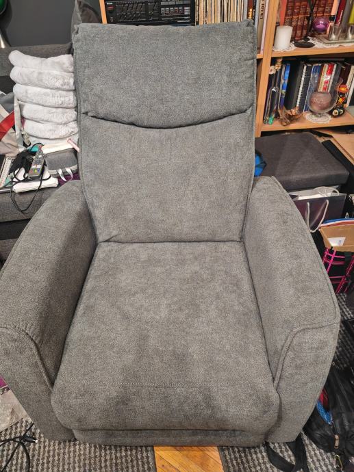 Prodajem potpuno novu relaks fotelju, ima dizanje nogu i spuštanje naslona na struju i kako vidite ima i uz gumbiće USB priključak za punjenje mobitela ili laptopa ili već što treba, fotelja je jako lijepa i udobna, jedino molim nikakve kombinacije s nikakvim kurirom koji će doći po nju i platiti ili tako slično, samo primopredaja,