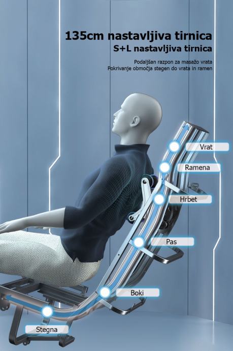 S+L podesiva tirnica omogućuje prošireni domet za masažu od vrata do bedara i ramena.