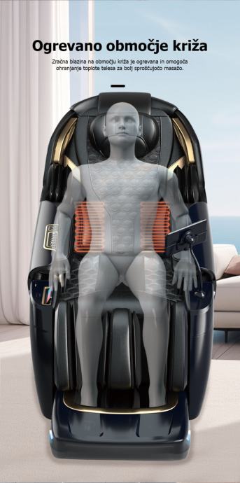Zračni jastuk na području križa je grijan radi održavanja topline tijela i opuštanja masaže.