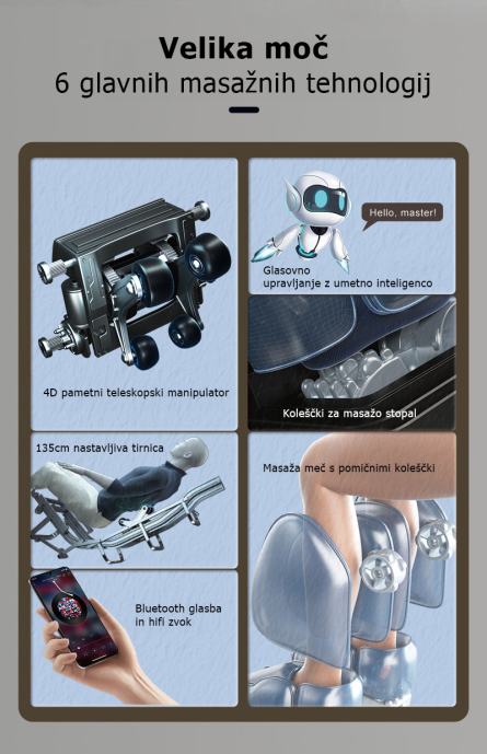 Masažno područje: Vrat, ramena, pojas, ruke, meča, noge, stopala, gležnji, tabani