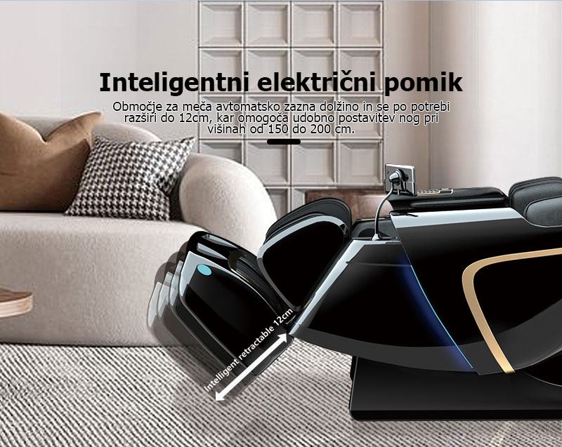 Automatski detektira duljinu nogu i proširuje se do 12 cm po potrebi, omogućavajući udobno postavljanje nogu na visinama od 150 do 200 cm.