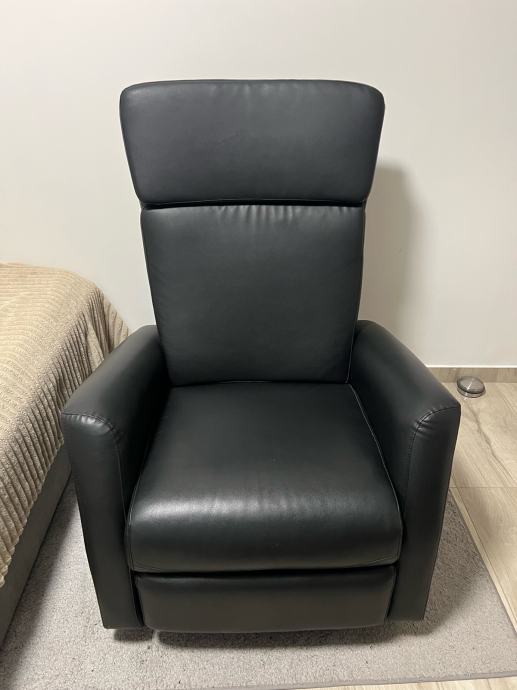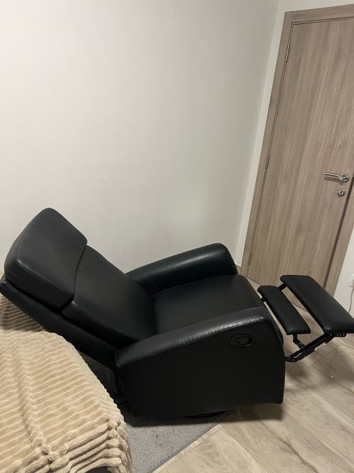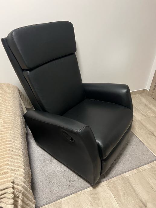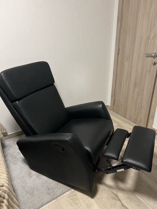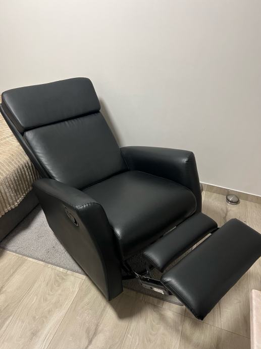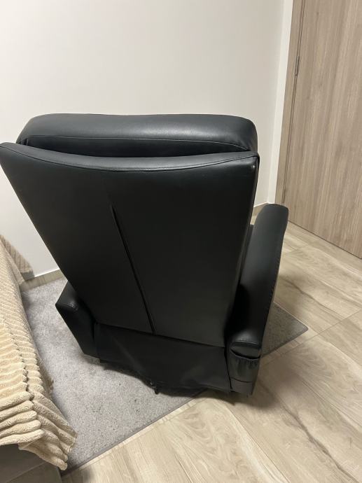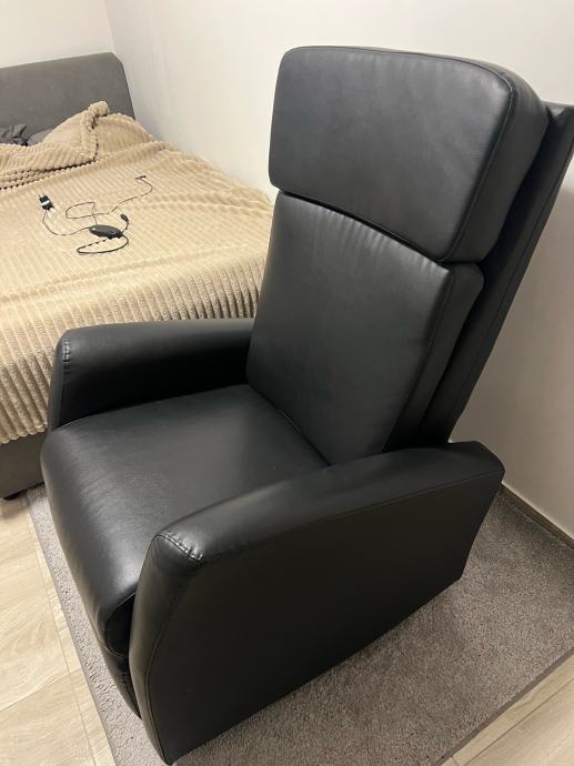 Crna kožna masažna fotelja na struju koja se može naslanjati, ispružiti noge i okretati. Dobivena na poklon, jako slabo korištena u odličnom je stanju jedino prilikom selidbe jedan gumb na daljinskom je pukao ali idalje sve radi. Hitno prodaja radi preuređivanja.