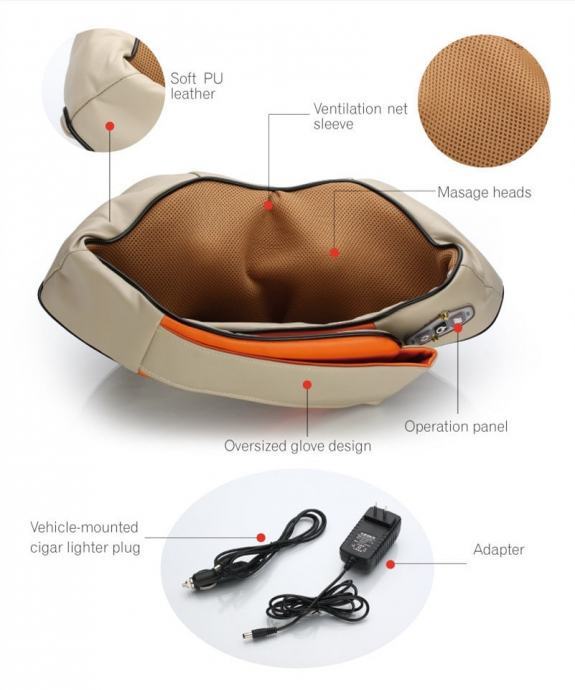 -Uživajte u učinkovitoj masaži pomoću koje ćete se riješiti stresa i ukloniti napetost. Višenamjenski masažer pruža vam kombinaciju shiatsu masaže, ciljanog pritiska na bolna područja, aromaterapije i terapije toplinom. Poboljšajte cirkulaciju i ublažite neugodne bolove koji vam stvaraju osjećaj nelagode.