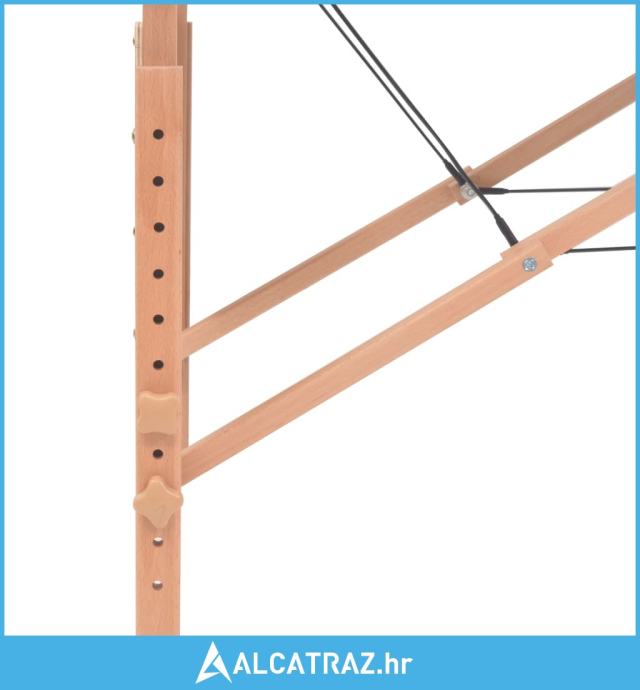 Ovaj stol za masažu ima čvrsti drveni okvir i presvučen je visokokvalitetnom umjetnom kožom. Njegovo posebno debelo područje za ležanje, naslon za glavu i bočni nasloni za ruke nude najveću udobnost. Naslon za glavu, naslon za leđa i prednja polica za ruke mogu se podesiti, kao i visina stola, što korisniku omogućuje udobno ležanje, a masažeru odabir željene radne visine.