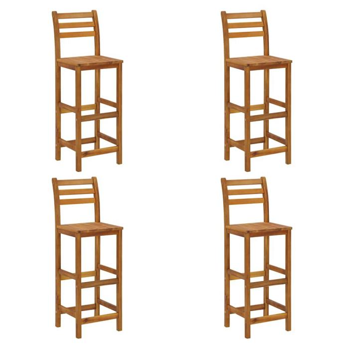 Ovi barski stolci izrađeni su od masivnog bagremovog drva, zbog čega su čvrsti, izdržljivi i prikladni za unutarnju i vanjsku uporabu. Grubo drvo bagrema, tvrdo drvo s gustim godovima, ima snagu da izdrži težinu i također može podnijeti trošenje uzrokovano vremenom. Nasloni za leđa i oslonci za noge pružaju dodatnu udobnost prilikom sjedenja. Zahvaljujući površini premazanoj uljem, stolice se lako čiste vlažnom krpom.