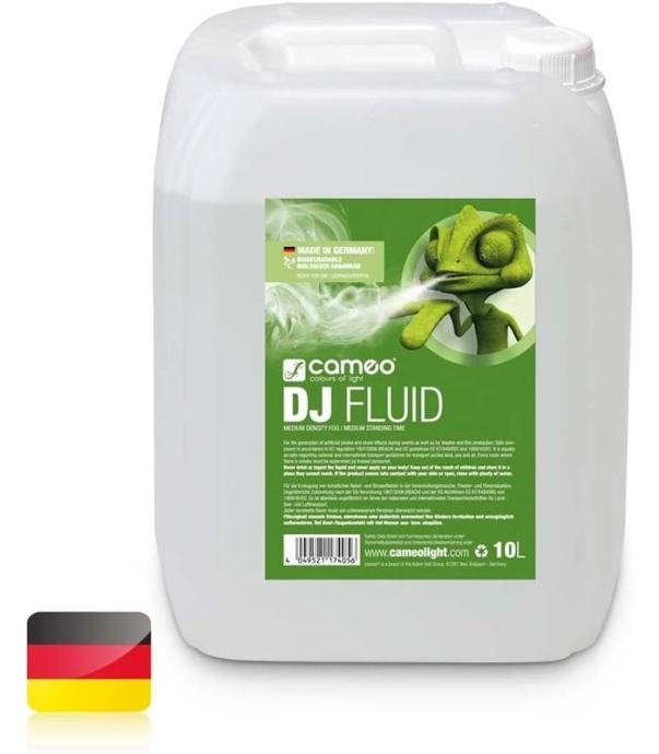 Cameo DJ Fluid je tekućina za dim mašine proizvedena u Njemačkoj, bez mirisa je, nije otrovna i biorazgradiva. Namjenjena za srednju gustoću magle i srednje zadržavanje. 10 litara.