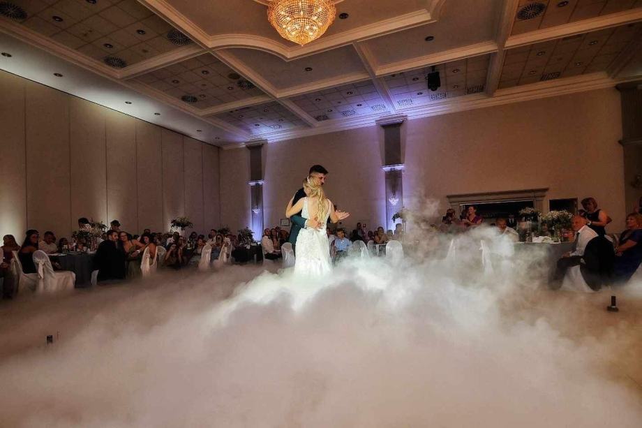 Mašina za niski dim bez suhog leda. Uređaj radi na destiliranu vodu i tekućinu za niski dim. Moguća prezentacija i proba prije kupnje.