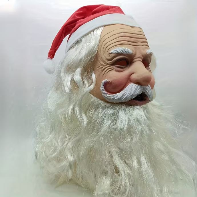 Kostim Djeda Mraza s bijelom bradom, realistični božićni rekvizit, tema popularne kulture, rad bez napajanja, s torbom za pohranu za Božić