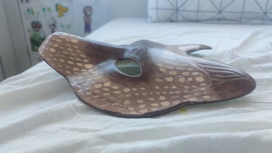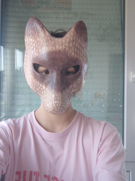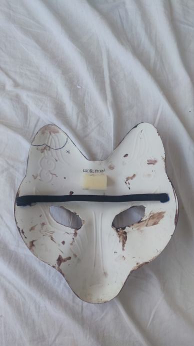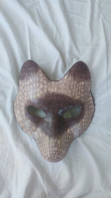 Maska je ručni rad od mlade umjetnice namijenjena za Theriane ili bilo koga koji hoće cool masku Vuka. Maska je nošena nekoliko puta za probu od strane umjetnika, stanje odlično. * Također izrađuje maske po narudžbi, kontaktirati na profil ili whatsapp porukom na 0955268383.