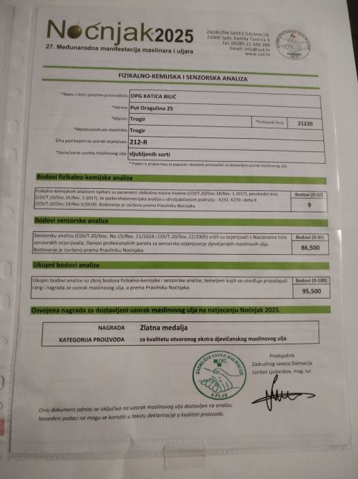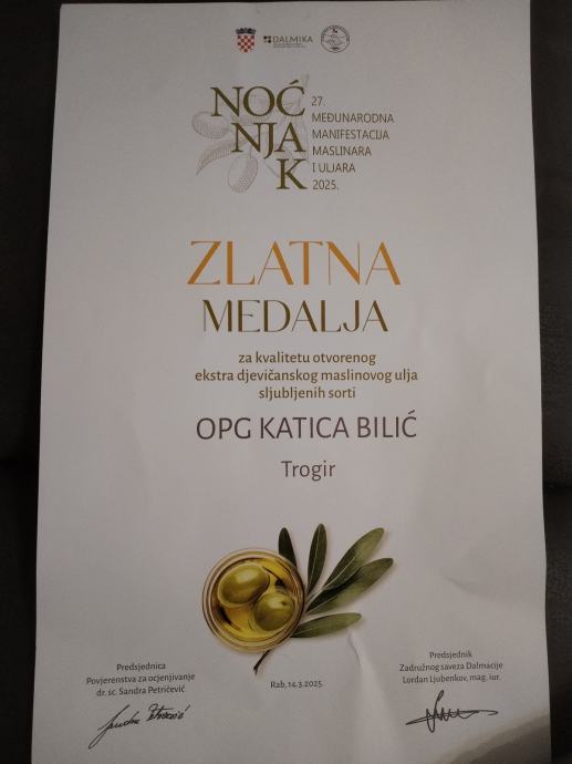 Ekstra djevičansko maslinovo ulje ||| Zlatna medalja Nocnjak 2025