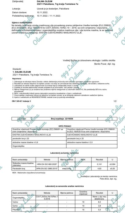 - 1000L ekstra djevicanskog maslinovog ulja, zadnja berba - 17€/19€ (plastika/staklo)