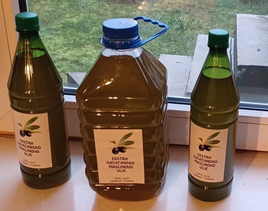 Mlado domaće ekstradjevičansko maslinovo ulje iz zaleđa Šibenika, sorta oblica.