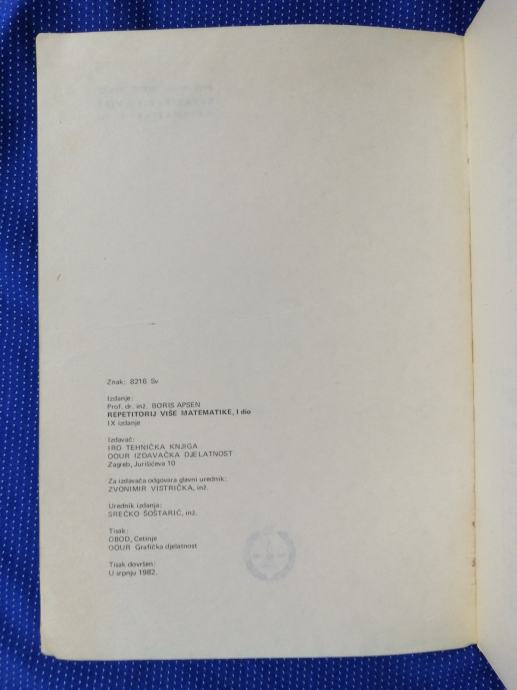 Boris Apsen – Repetitorij više matematike 1 (B105)