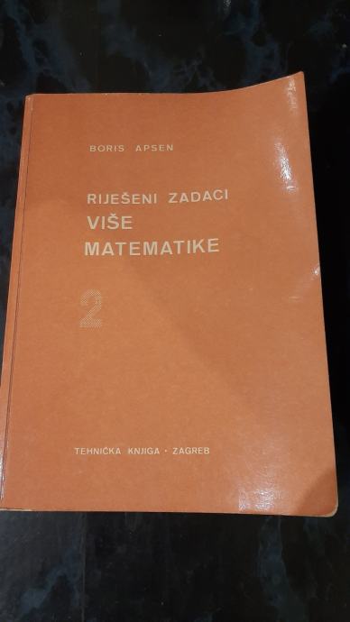 Boris Apsen Riješeni zadaci više matematike 2. Meki uvez, 382 stranice. Izdanje Tehnička knjiga Zagreb 1979. godine. Kontakt isključivo na broj moba 097 664 55 25, whats up ili viber.