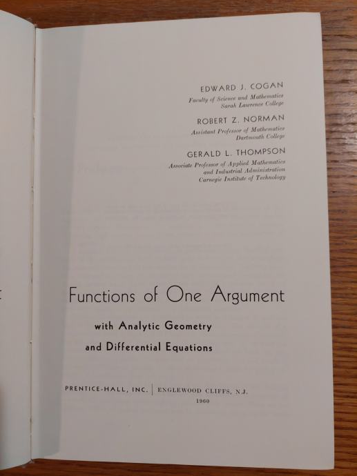 CALCULUS of Functions of one ARGUMENT - COGAN & NORMAN & THOMPSON