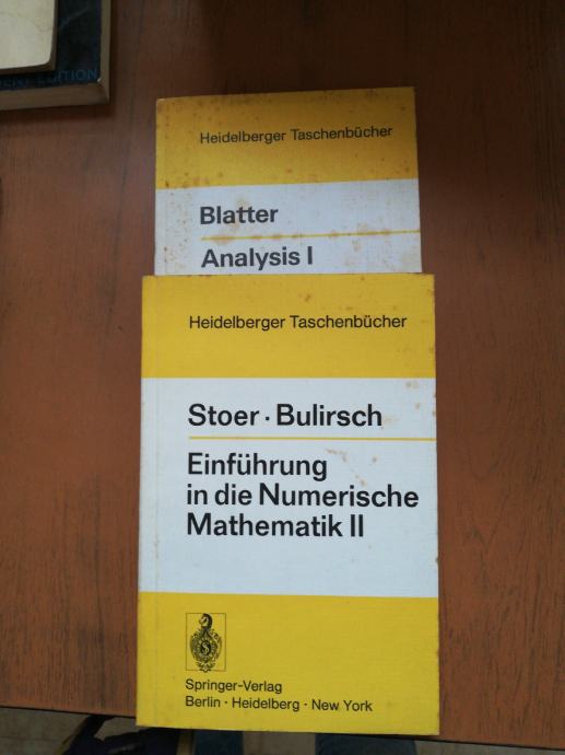 Autori: Stoer- Bulirsch: Einfuhrung on die Numerische Mathematik i Blatter: Analysis. Prodajem za 7e