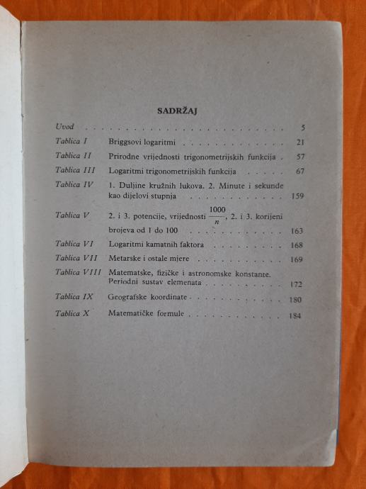 Logaritamske tablice - izdanje 1980 - po O. Schlomilchu i J. Majcenu