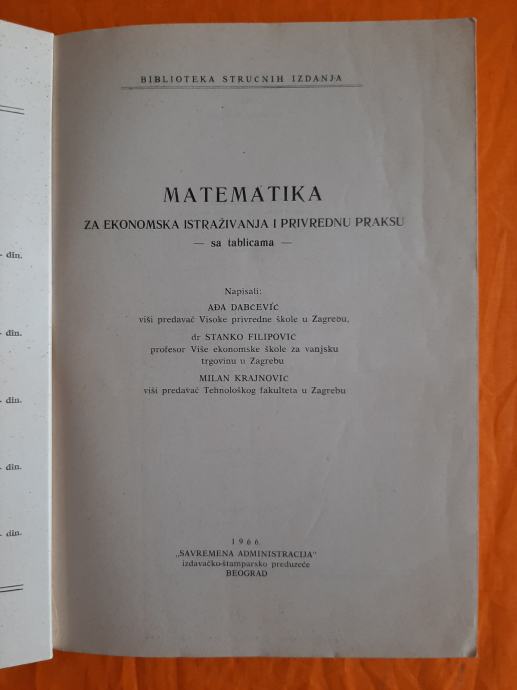 Matematika za ekonomska istraživanja i privrednu praksu sa tablicama