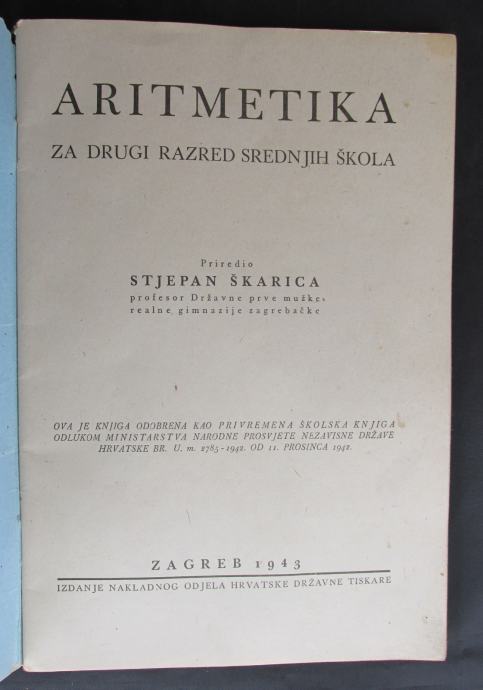 NDH PERIOD WW2 - 1943.g. ARITMETIKA, S. Škarica