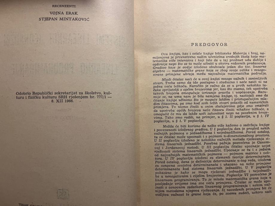 Sistemi linearnih jednadžbi i linearno programiranje M. Radić , 1967