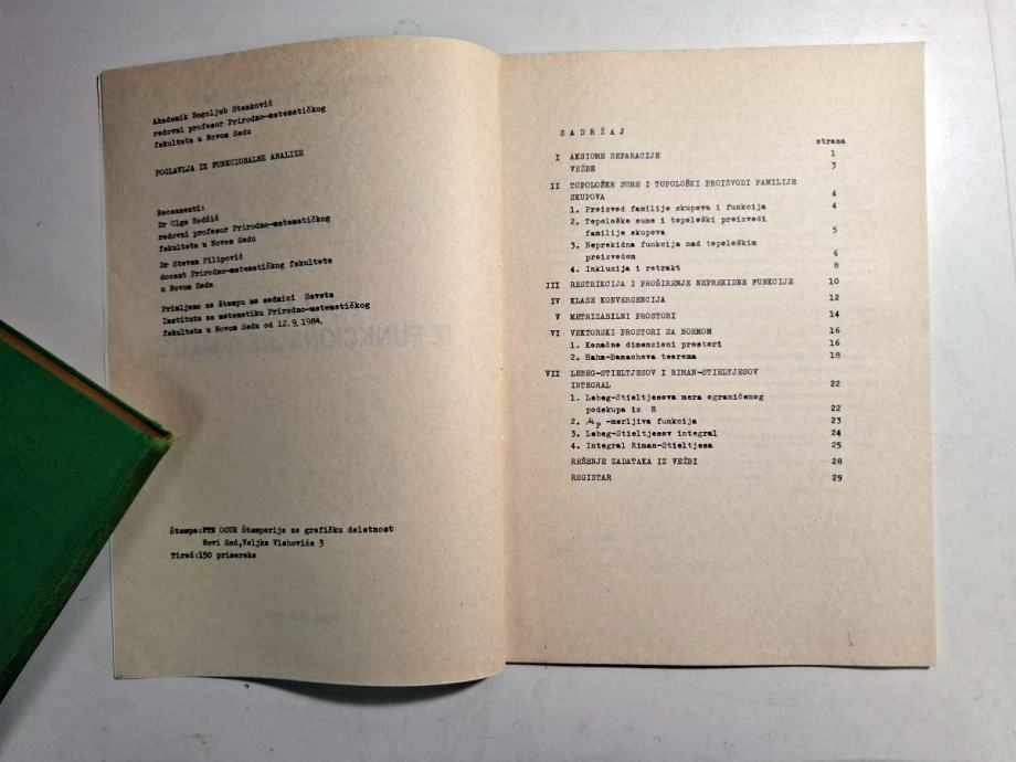 Izdanje Prirodno-matematički fakultet, Institut za matematiku, Novi Sad (1984.)