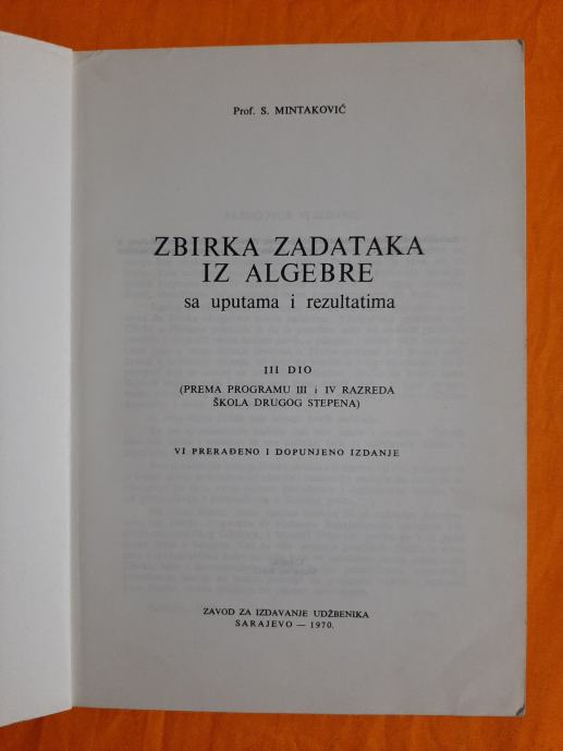 Zbirka zadataka iz algebre sa uputama i rezultatima - S. Mintaković
