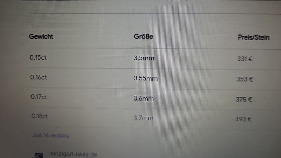 Pojedinacne velicine su 0.16 , 0.17 , 0.18 ct.