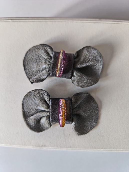 Dvije ručno rađene sive mašnice od prave kože, antilopa.