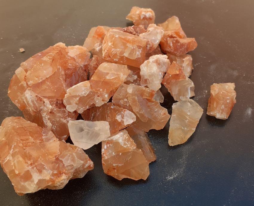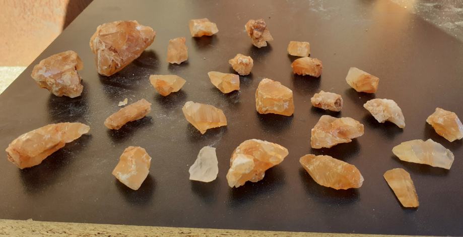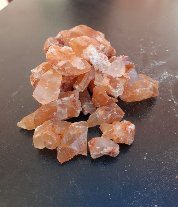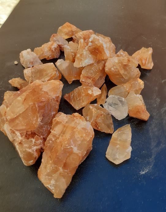 Razni ocisceni komadi kalcita. Od bijele do narancasto-crvenkaste boje. Na kupovinu vise komada popust. Kupac placa postarinu