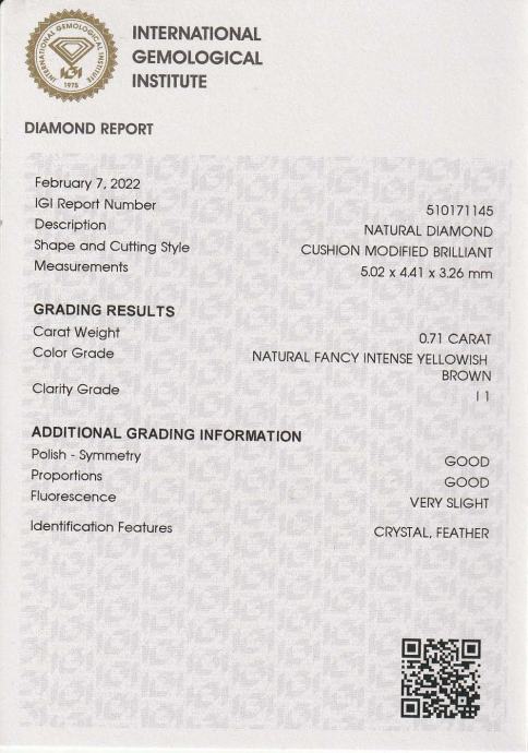 Prirodni dijamant sa certifikatom međunarodno priznatog laboratorija.