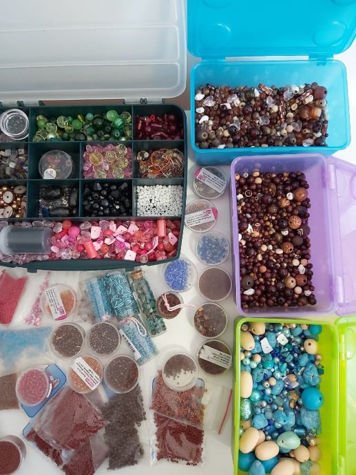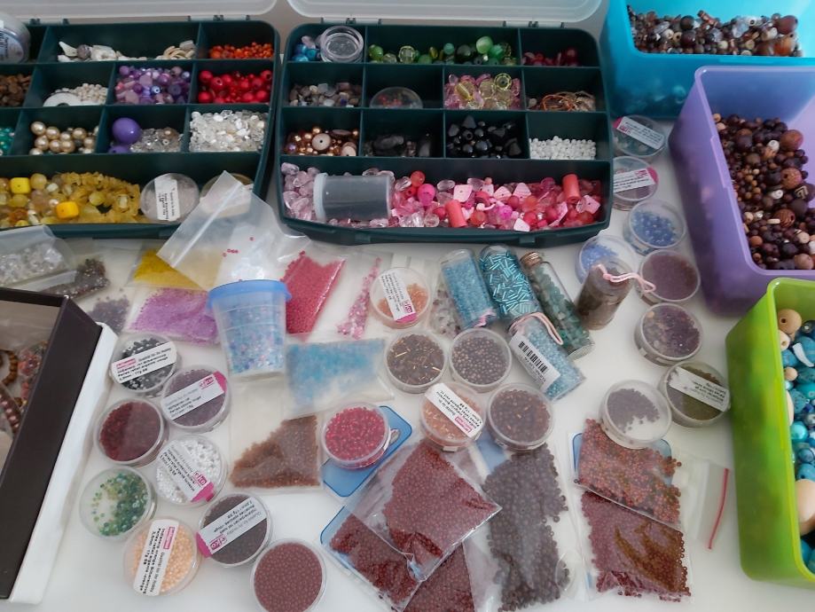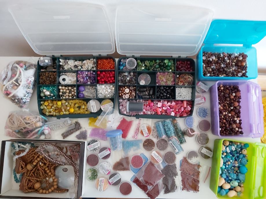 Prodajem sve zajedno, ima i gotovog nakita (lijevo u 2 vrećice i u prvoj kutiji) koje sam mislila razbit i iskoristit perlice.